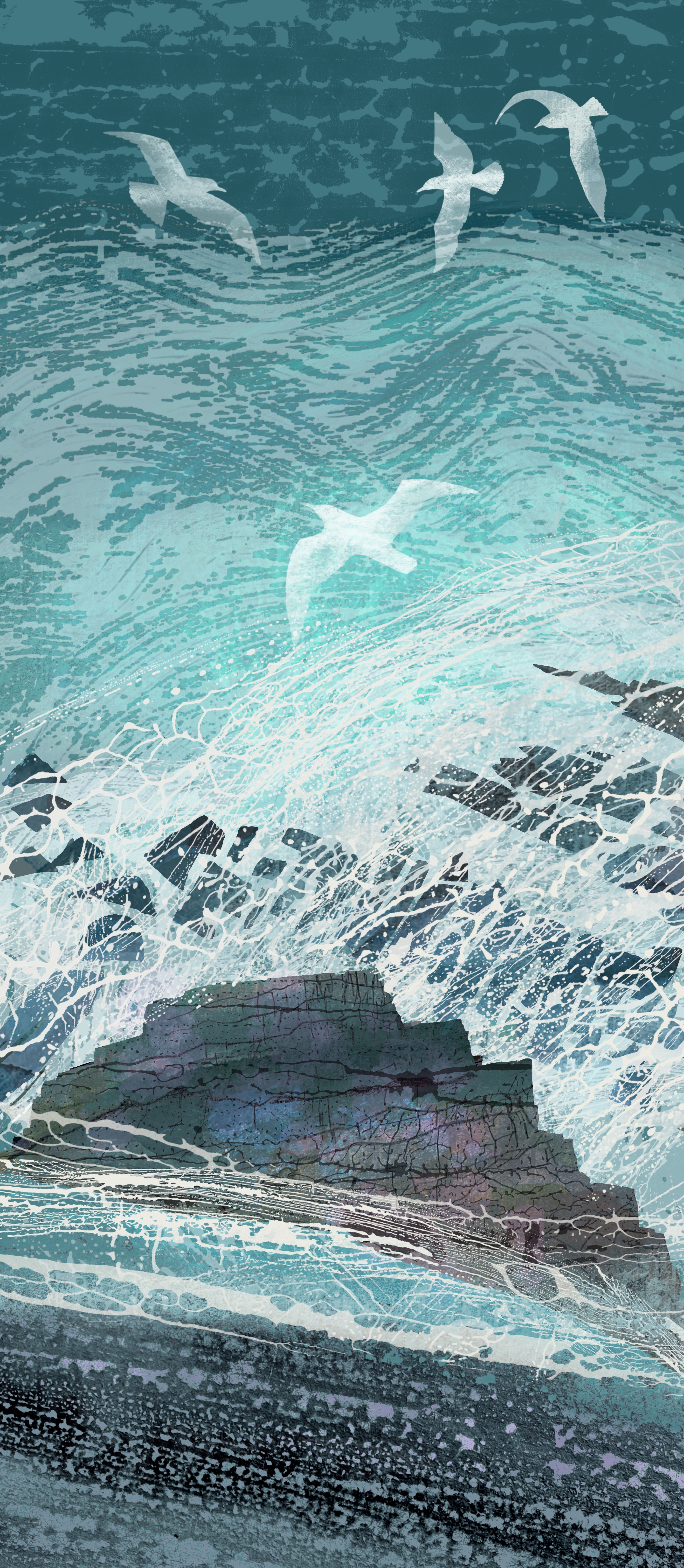 Both the monotone textures and the coloured ink paintings, together with my initial pencil drawing are then scanned or photographed using an iPad pro.