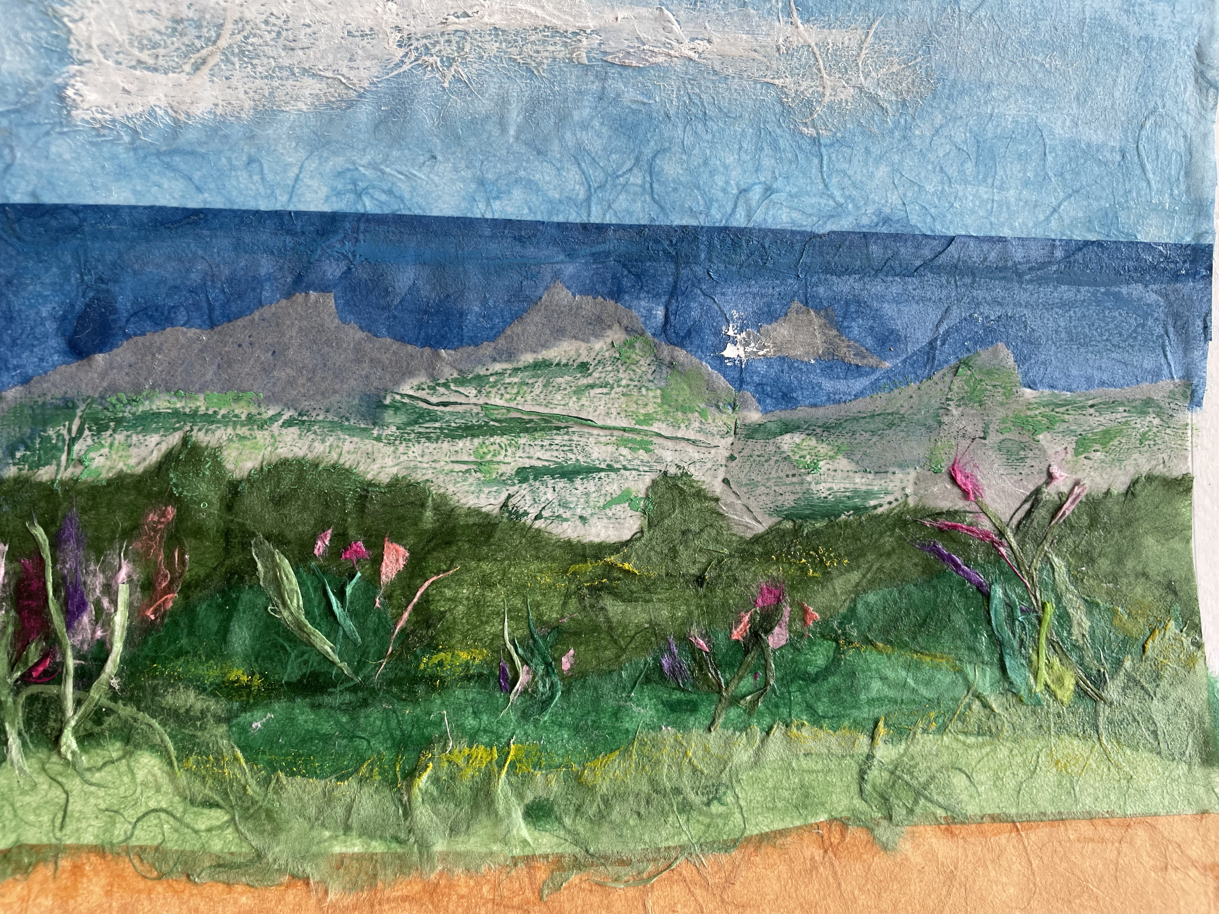 After a few false starts I finally started to feel comfortable using an oil and tissue paper mix to create seascapes and landscapes.